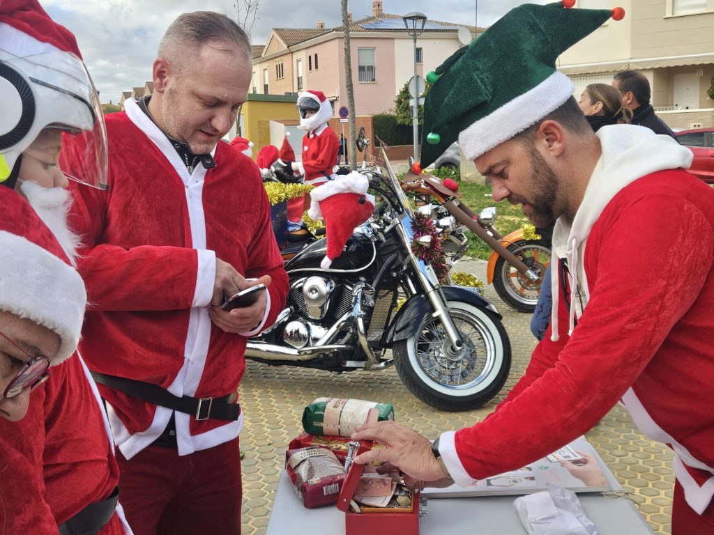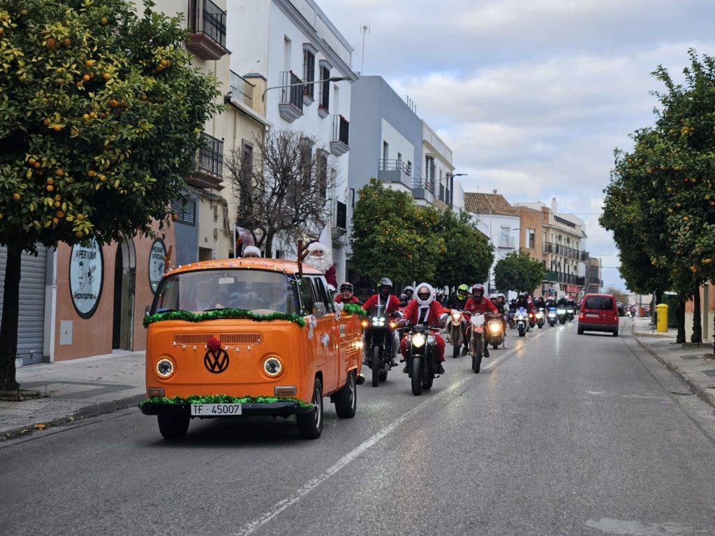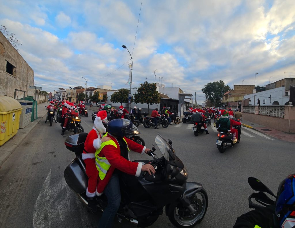 Decenas de motoristas, casi 250 motos, vestidos con disfraces de Papá Noel, convirtieron el centro de Utrera en un espectáculo navideño lleno de color, ruido de motores y, sobre todo, espíritu solidario, ya que la iniciativa tiene como objetivo la recaudación de juguetes y fondos destinados íntegramente a la Asociación Acéptalos.