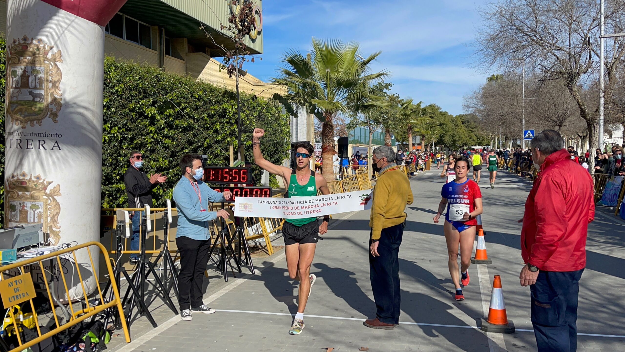 Fueron muchas las felicitaciones recibidas por el nivel organizativo, el circuito, las instalaciones y la cantidad y calidad de los atletas asistentes. Todo un espectáculo en el que estuvo presente durante toda la mañana el concejal de Deportes Daniel Liria acompañado del presidente de la Federación Andaluza de Atletismo Enrique López Cuenca. Ellos fueron los encargados de la ceremonia de entrega de trofeos y medallas, tanto a los vencedores del Campeonato de Andalucía, como del Gran Premio Ciudad de Utrera que ojalá se consolide en el calendario nacional e incluso internacional como una cita a tener en cuenta para el calendario de esta espectacular modalidad del atletismo, la Marcha.